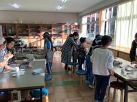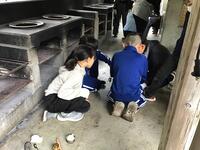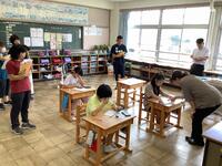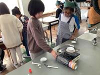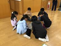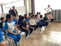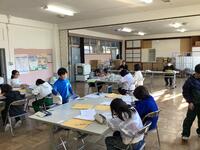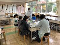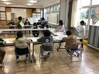 担当の先生から災害についてお話を聞いたあと、各班に分かれて給食を食べました。