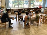情報委員会は担当に分かれ、読書クイズ作成や紙芝居を選んでいます。