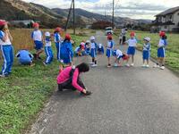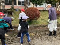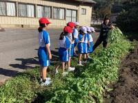 1、2年生は、以前1年生が種を蒔いて育てた大根を収穫しました。