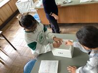 4年生理科は、空気を温めるとどうなるか実験をしています。