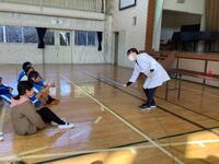 一度集まり、上手に投げてキャッチしている児童に投げるときのコツを話してもらいました。