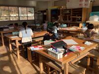 1、2年生の図工は前回の続きで葉っぱを使って絵を描いています。