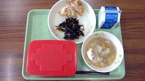 ☆ご飯・牛乳・県産豚肉ニラ入り餃子・五目煮・豚汁