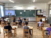 5年生の外国語では、モニターに合わせて自己紹介をしました。