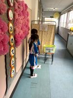 昨年度は車で送ってもらっていましたが、今日は傘をさして歩いてくる子もいました。