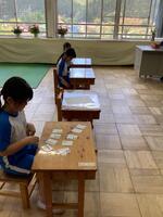 1年生の書写では「く」「し」「つ」「へ」などを丁寧に書く練習をします。