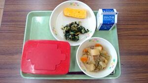 ☆塩ジョイランチ(適塩献立);ご飯・牛乳・厚焼き玉子・おかか和え・肉じゃが
