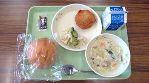 ☆セルフフィッシュバーガー(県産小麦丸パン)・牛乳・白身魚フライ・花野菜サラダ・肉団子とキャベツのクリーム煮・ソース