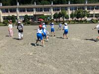 今日の業間は仲良し班でドッジボールをして遊びました。