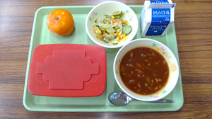☆ご飯・牛乳・ハヤシシチュー・枝豆のサラダ・冷凍ミカン