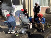 3年生の社会科では七輪を使って火を焚く体験をしました。