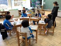 1、2年生の図工は前回の続きで葉っぱを使って絵を描いています。