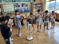 1、2年生の音楽では、暑さに負けず元気いっぱい歌っています。