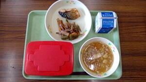 ☆お魚ランチ;ご飯・牛乳・鯖の塩焼き・五目きんぴら・豚汁