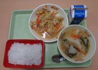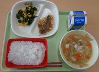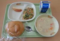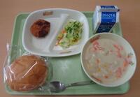 お昼ごはんはカツカレー。みんなでおいしくいただきました。