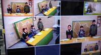 教師の指示をよく聞いて所定の場所に避難した後、体育館に全員集合し、教師が実演を交えて防犯ブザーを鳴らす場面について見本を示しました。