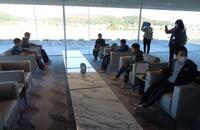 その後は学校別での見学です。重要な会議などを行うラウンジやテラスの見学では、大きなソファや広いデッキにみんな驚きの表情を浮かべていました。