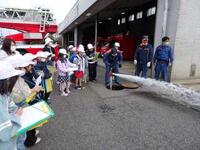 屋外に出ると、消火栓がありました。予想以上に勢いよく吹き出す水に、みんなびっくり!