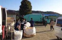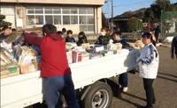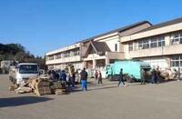 3校の保護者の皆様が中心となって地域内の資源物を回収し、南摩中校庭に待機している教職員や中学生の生徒さんが荷物を所定の場所に降ろします。