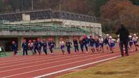 大きなトラックを思い思いのスピードで走ってウォームアップを行いました。