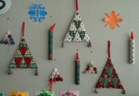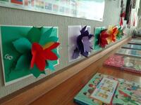 色画用紙で作った色とりどりのポインセチアもきれいに並んでいます。