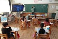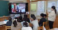 今年度の臨海自然教室は、他に上南摩小と南押原小の計3校が1台のバスを利用し、同じ日程で活動するため、タブレット端末で3校をオンラインで結び、事前交流学習を行いました。
