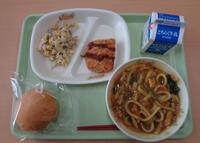 牛乳 カレーうどん チキンごぼうサラダ