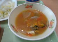 今日の汁物は「かぼちゃ入りけんちん汁」です。体がぽかぽか温まりそうですね。