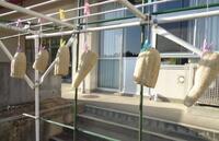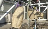 冬の寒空の下、何日もかけて天日干しを行い、ようやく「手作りたわし」の完成です。