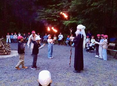 火の神様も登場しました。出し物もあります。みんなで楽しい時間を過ごすことができました。