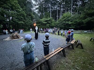 2日目の夜は、キャンプファイヤーを行いました。上南摩小と津田小の友達と一緒に行いました。
