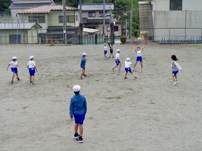 ゲームが始まると、6年生は、1年生を守ったり、ボールを渡して投げられるように心を配ったりしながら進めてくれました。