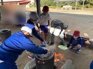 12月2日(金)、臨海自然教室2日目午後の活動は、塩作りと焼き芋作りです。自分たちで汲んできた海水で塩をつくります。火をおこし、水分を蒸発させて、塩をつくるのは大変ですが、皆で協力し、無事に塩をつくることができました。