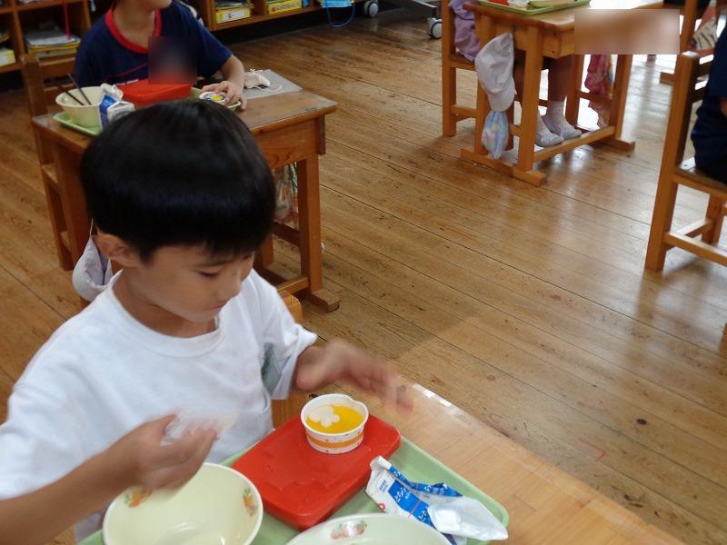 9月15日(木)、今日は、お話給食の日でした。絵本に出てくる食材を使った給食です。絵本の読み聞かせを聞きながら、給食をいただきました。子供たちは、いつもに増して、楽しそうに給食を食べていました。