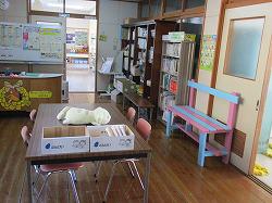 オープンスペース入り口付近にある、給食用「サンプルケース」上にお雛様が登場しました。