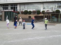 給食後は、お楽しみのロング昼休み。縦割り班ごとに遊びを決めて、思いっきり遊びました。先生達も鬼になって走ったり、審判になったりと班ごとの遊びを盛り上げました。