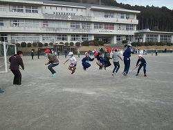 日差しが弱く、気温がなかなか上がらないなか、今日の業間休み時間に「体力づくり」を行いました。