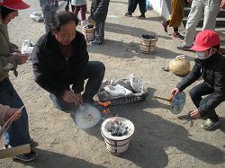 ゴシゴシと板の上に靴下を押し付け、動かしながら洗いました。ちょっと水が冷たかったようです。