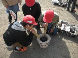 3年生が社会科の授業の中で、洗濯板(昔の道具)を使っての洗濯に挑戦しました。