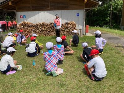 自然体験交流センターの方から、3日間を過ごす時に大切な合い言葉「おみやげ」(思いやり・みんなと協力・やさしい気持ち・元気)のお話もいただきました。