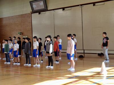 今日から運動会に向けた特別日課となっています。今日は、開会式の係の児童が、動きを確認していました。