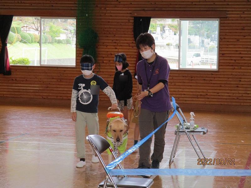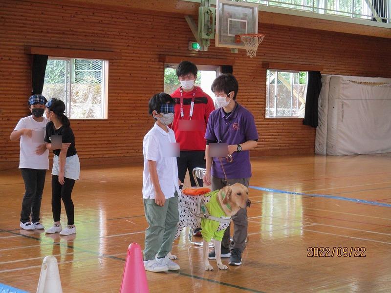 4年生は、総合的な学習の時間に「福祉」について学んでいます。9月22日(木)は、盲導犬協会の方々を招いて、盲導犬についてのお話を伺ったり、質問をしたり、体験活動をしたりしました。「目が見えない状態でも、盲導犬がリードしてくれたので安心しました。」「僕たちが、もっと盲導犬について周りの人たちに伝えていきたいと思いました。」など、子供たちは、多くのことを学んだようでした。