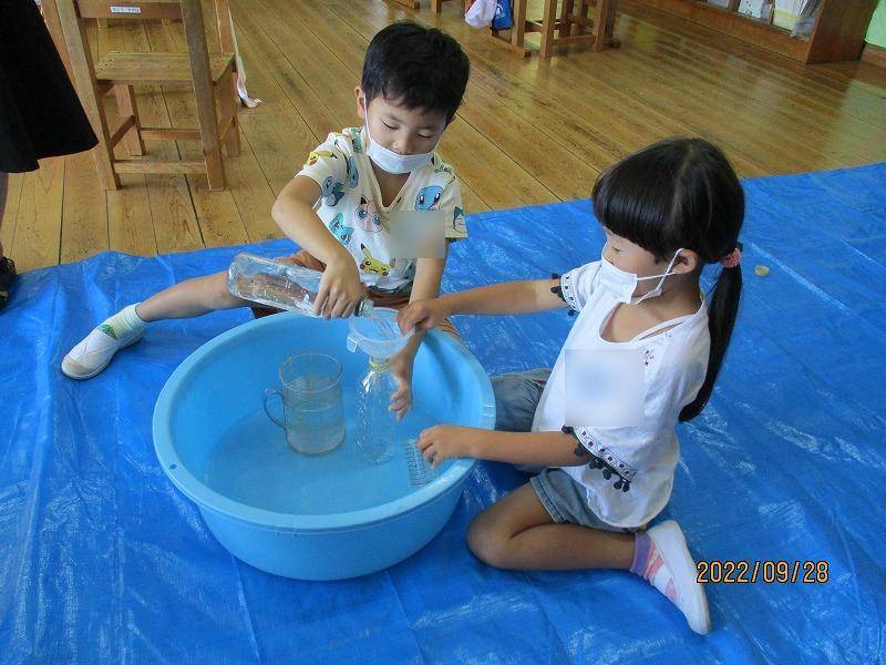 9月28日(水)、1年生は、「どっちがおおい」の学習をしていました。どのようにしたら、水の量を比較できるか、子どもたちが、自分たちで考えます。1年生は、いろいろな方法を考え、自分の考えを友達に伝えていました。
