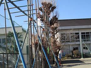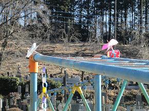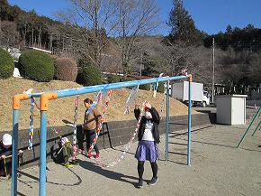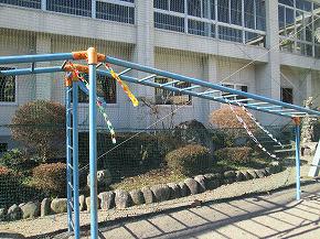 思い思いに校庭の固定施設にセッティングをして、鑑賞していました。残念ながら今日は微風で、なかなか風をつかまえるのが難しかったようです。
