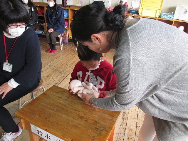 生まれたときのことやお腹の中にいたときのことを人形や紙芝居を使って