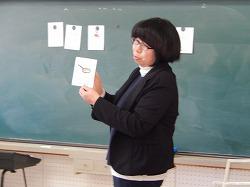 給食の歴史の紙芝居を給食委員会が発表しました。