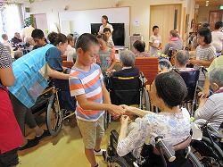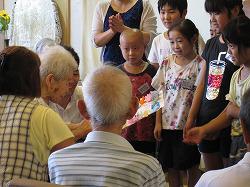 詩・俳句の朗読、手遊び、じゃんけんゲーム、ダンス披露等を行ってきました。お年寄りの方々と一緒に楽しい時間を過ごすことができました。最後に15日(土)に予定している運動会の招待状をお渡ししてきました。