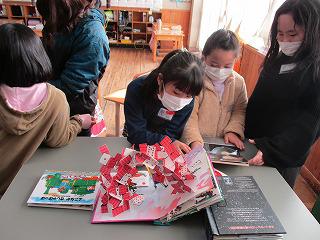飛び出す絵本や動く絵本に興味津々!