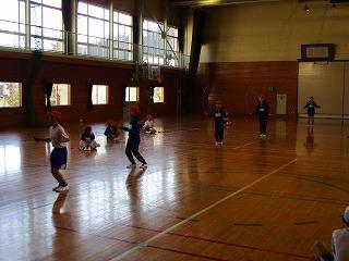 体育館では「ドッジビー」を