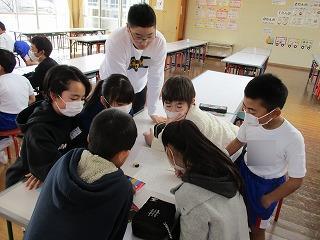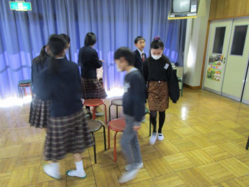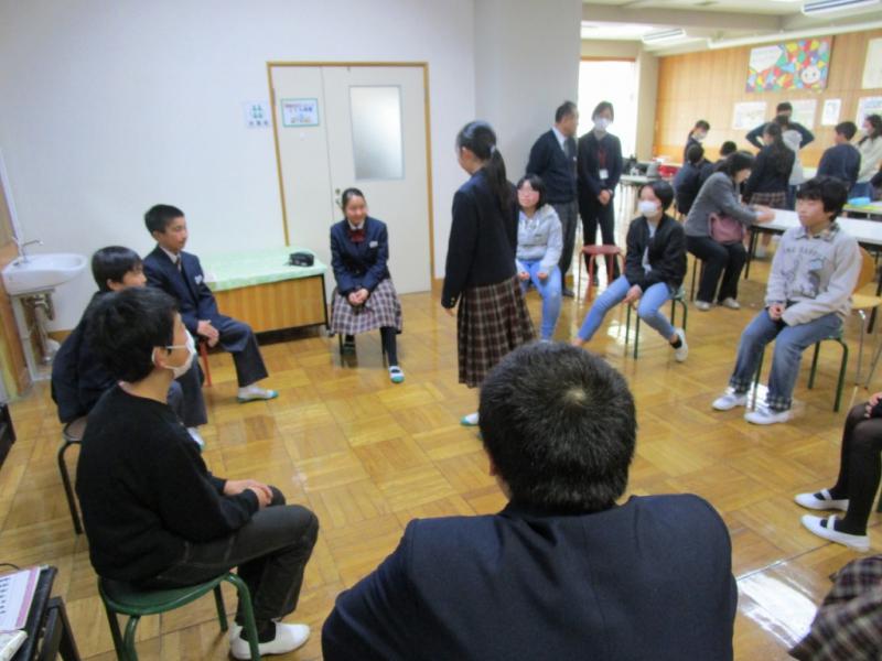 また、グループに分かれて、さらに詳細に中学校生活への質問に答えてくれました。その際、各グループの中学1年生が楽しいゲームを準備し、一緒にやって6年生の緊張がほぐれるように工夫してくれました。